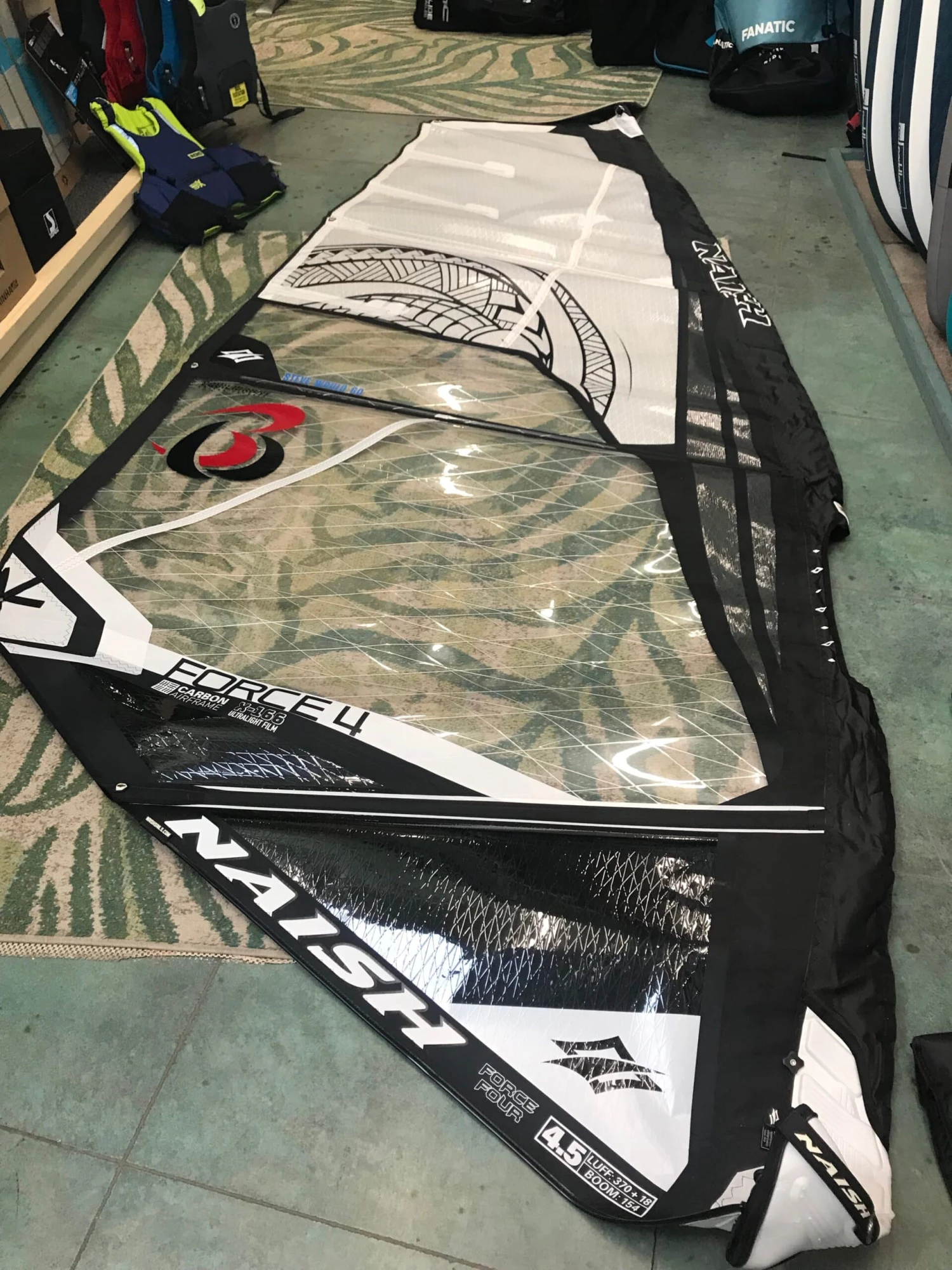“A-” condition. This lightweight, incredibly balanced, used Naish 4.5 Force IV 4.5 windsurfing sail is in great condition. Ships by quote.